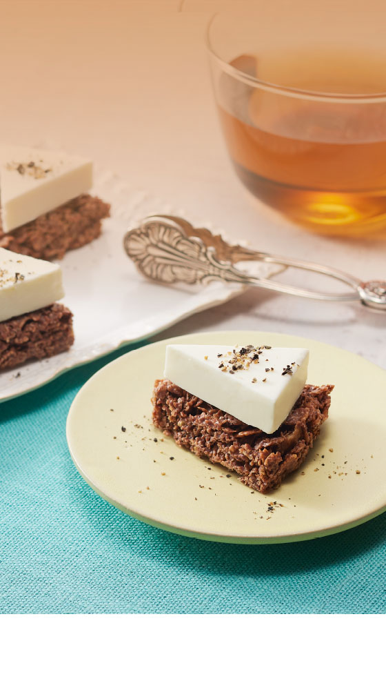 薄焼きのコーンフレークとむらさきいも味のサクサクとしたパフを、むらさきいも味のチョコレートコーチングで包み込みました。むらさきいもの甘い香りと豊かな味わいが楽しめます。“ぽいぽい”と食べやすいボール形状。