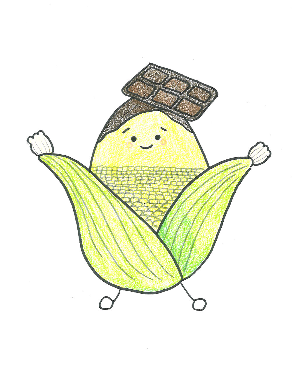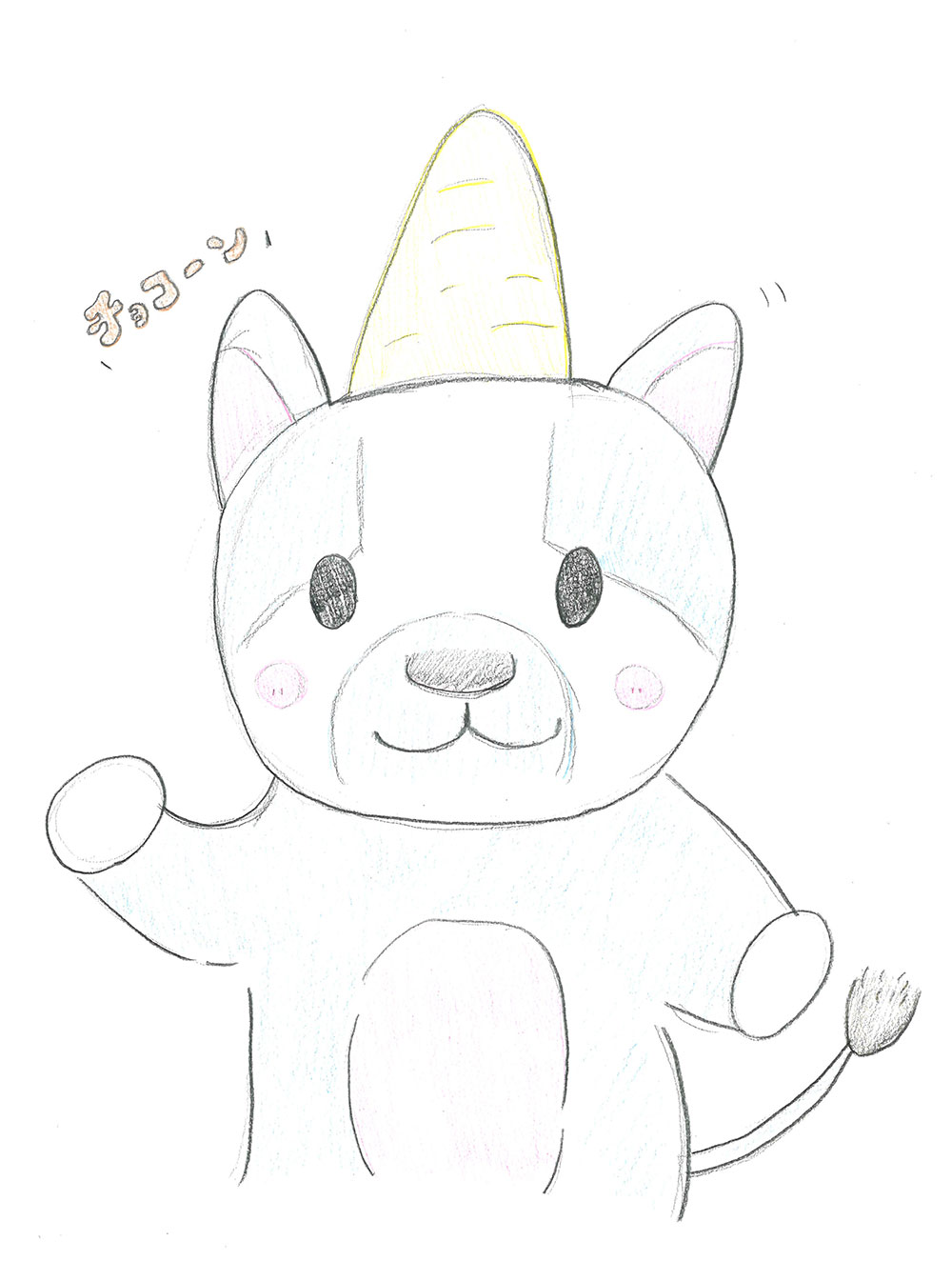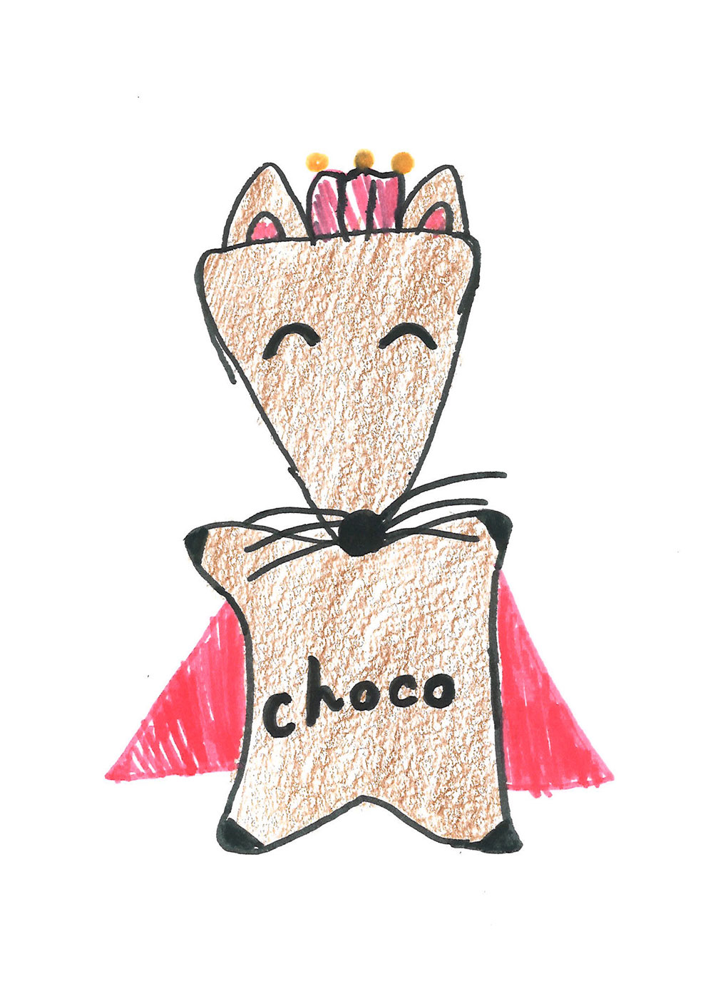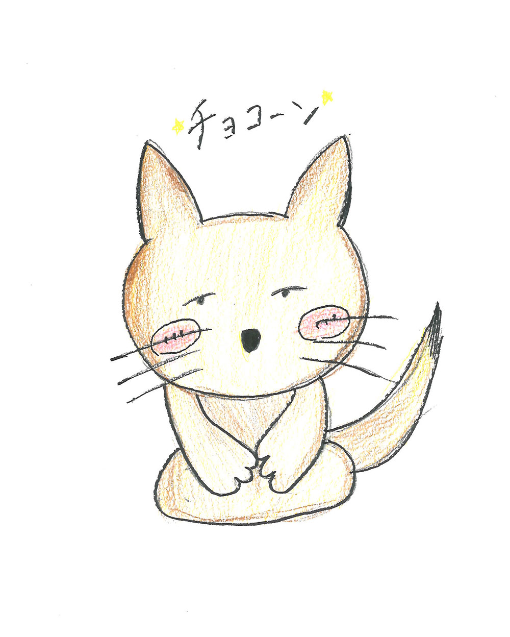 チョコフレークのブランドキャラクター。明るく元気でおっちょこちょい。いろんなものに変身できる、コーンフレークから生まれた!?好奇心旺盛な新種のキツネの男の子。