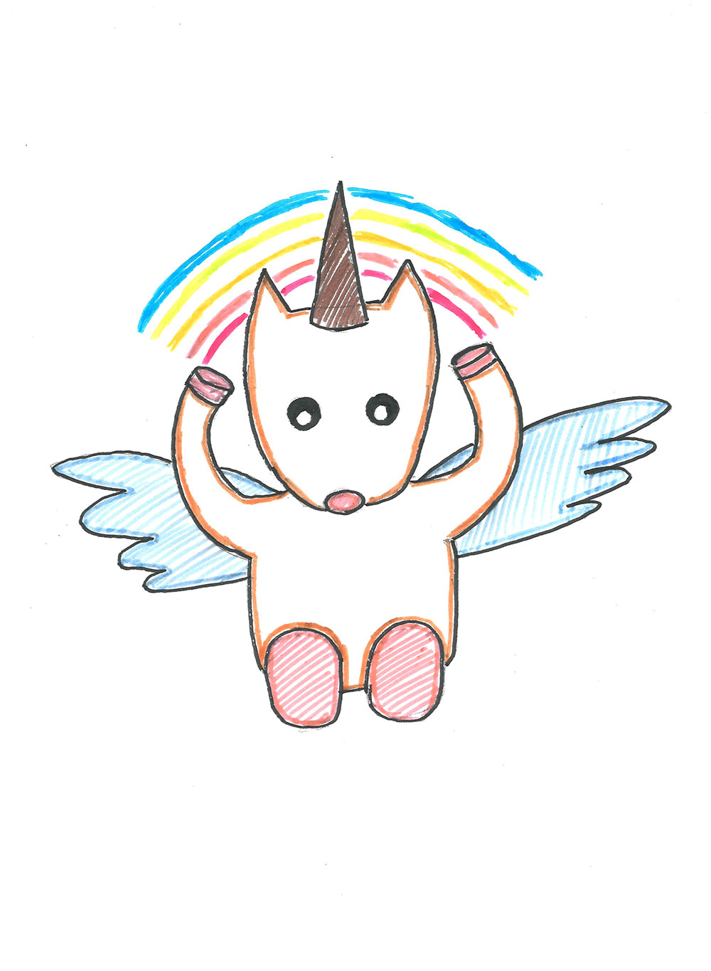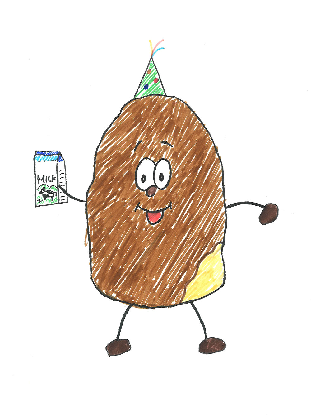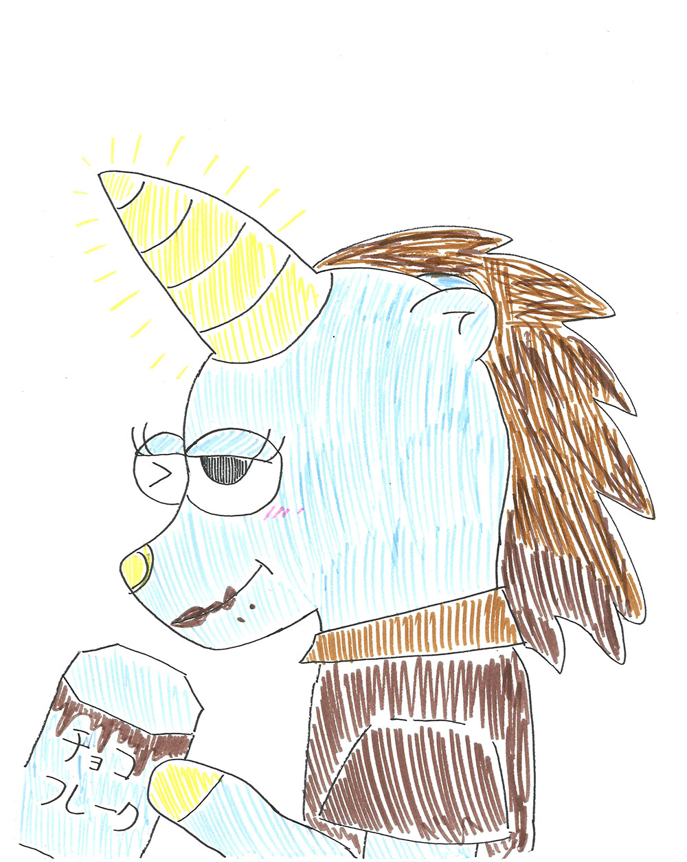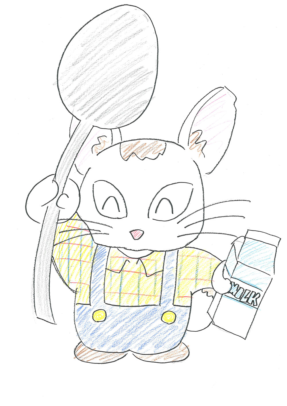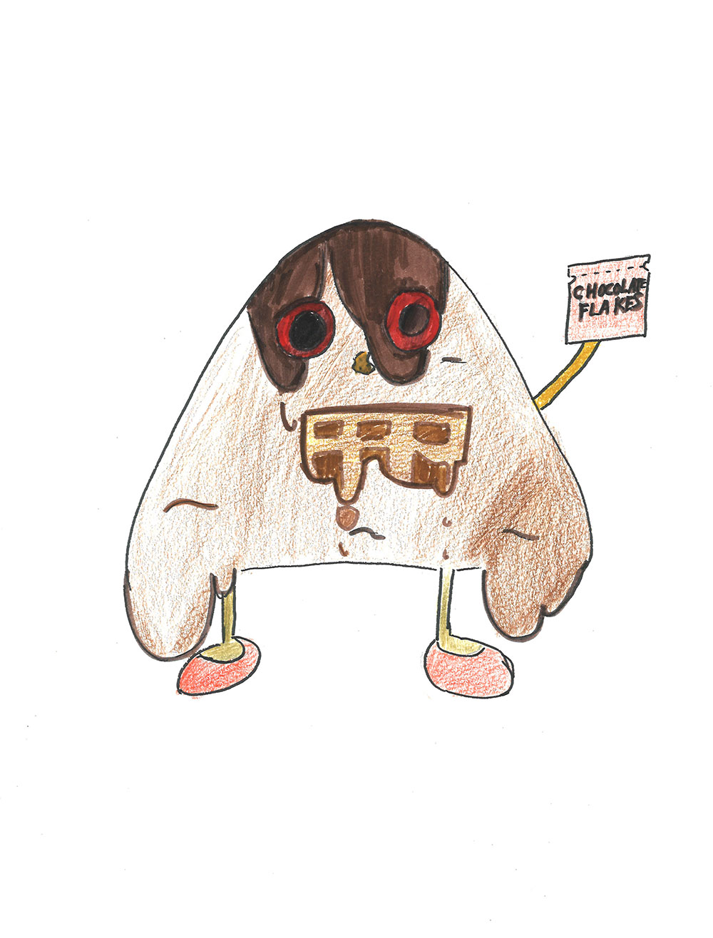 チョコフレークのブランドキャラクター。明るく元気でおっちょこちょい。いろんなものに変身できる、コーンフレークから生まれた!?好奇心旺盛な新種のキツネの男の子。