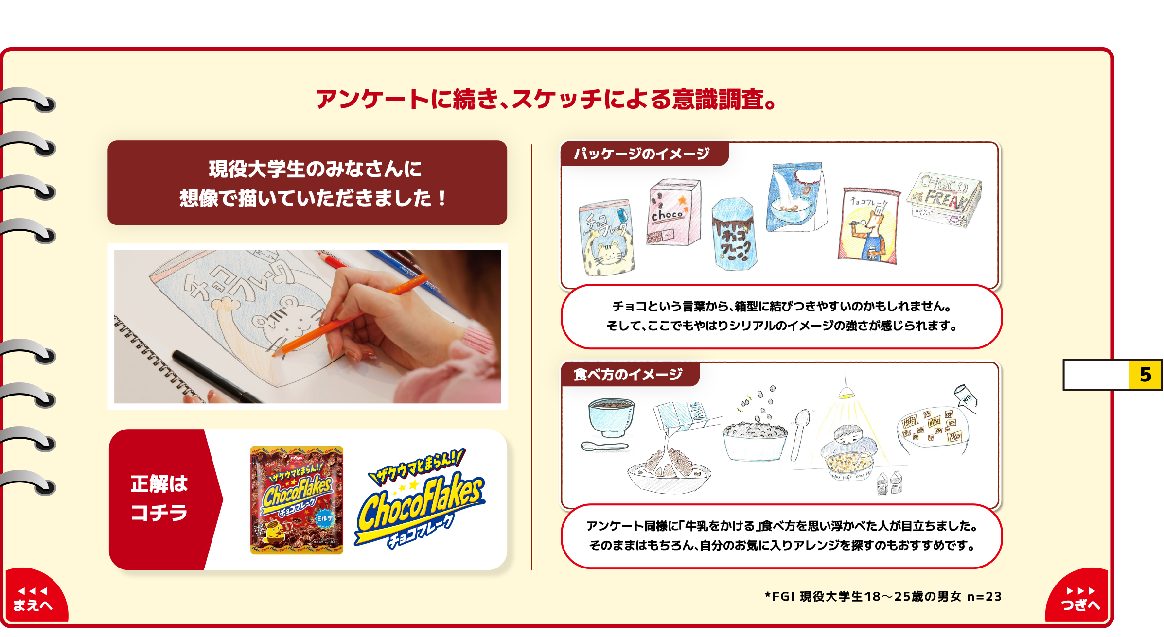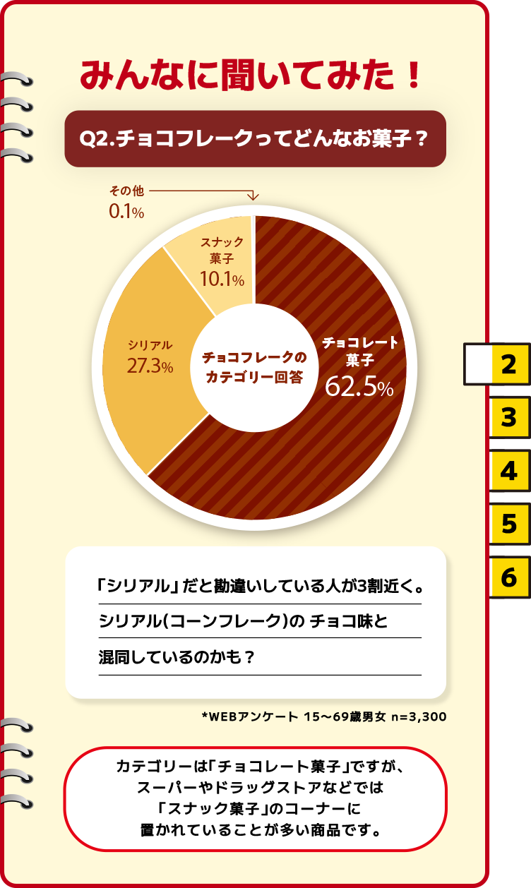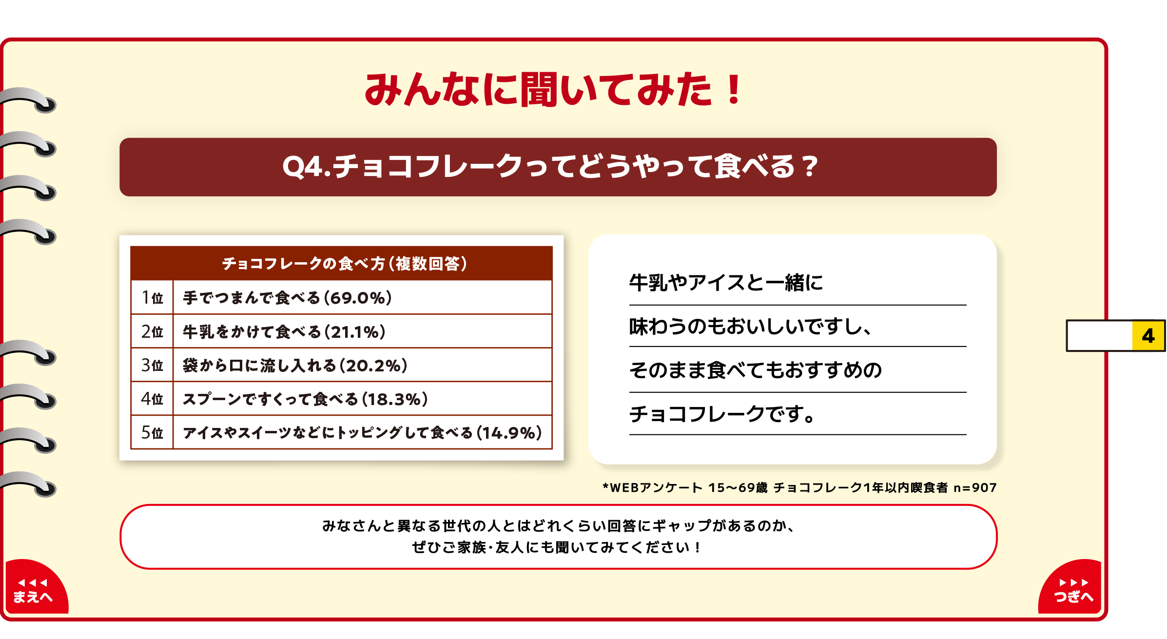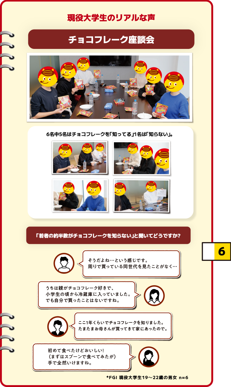 チョコフレークは1968年発売のロングセラー商品。コーンフレークのザクザク食感とチョコレートのおいしさで、長い間、親しまれてきました。
